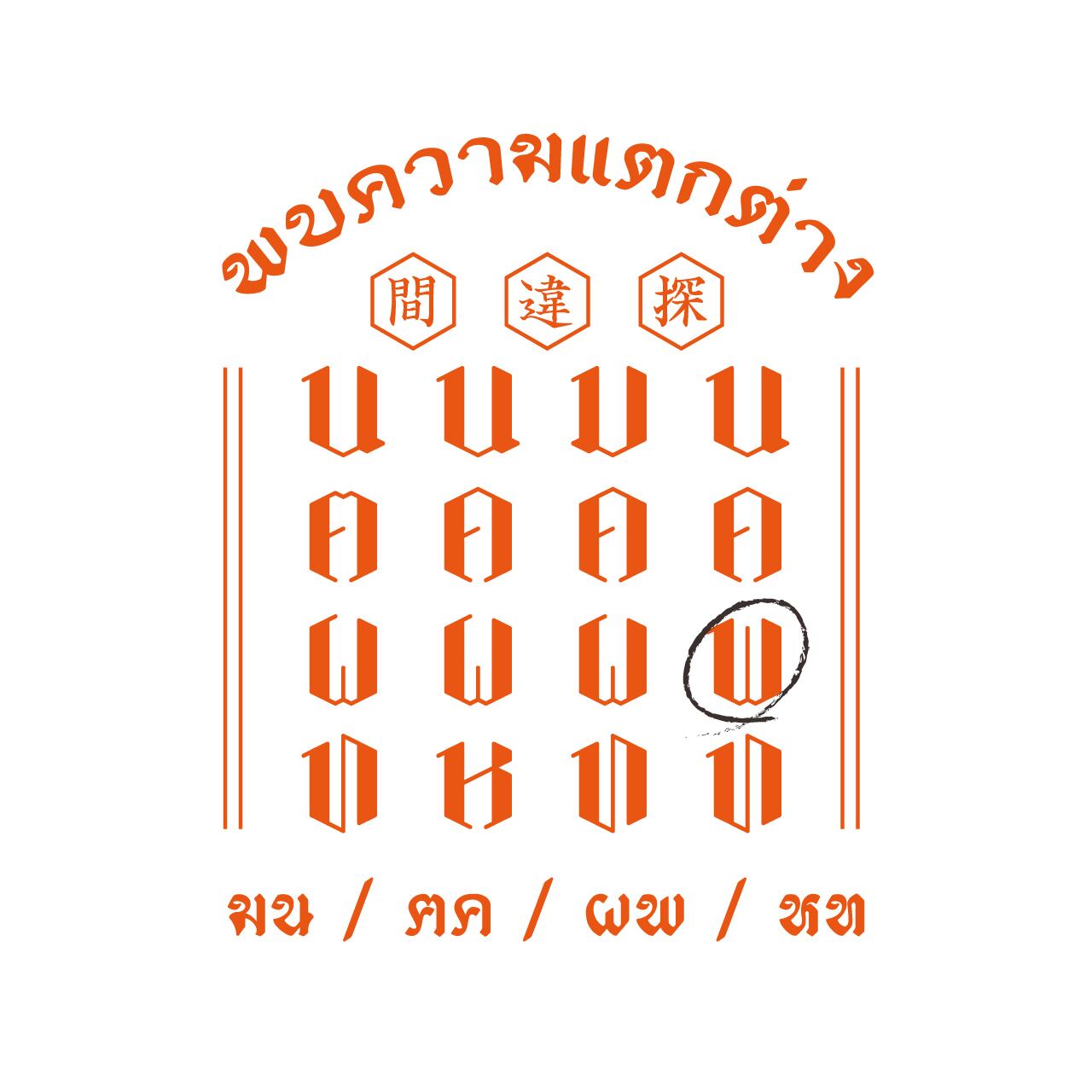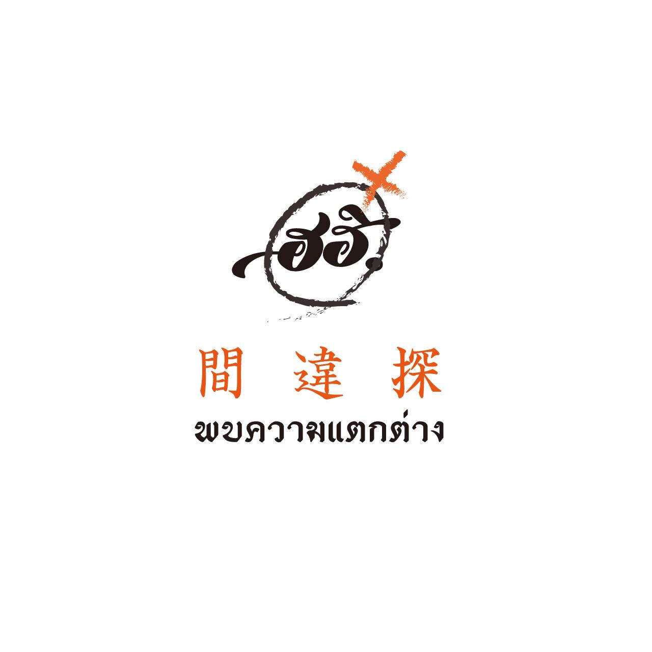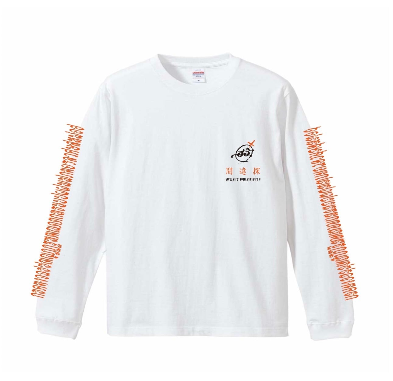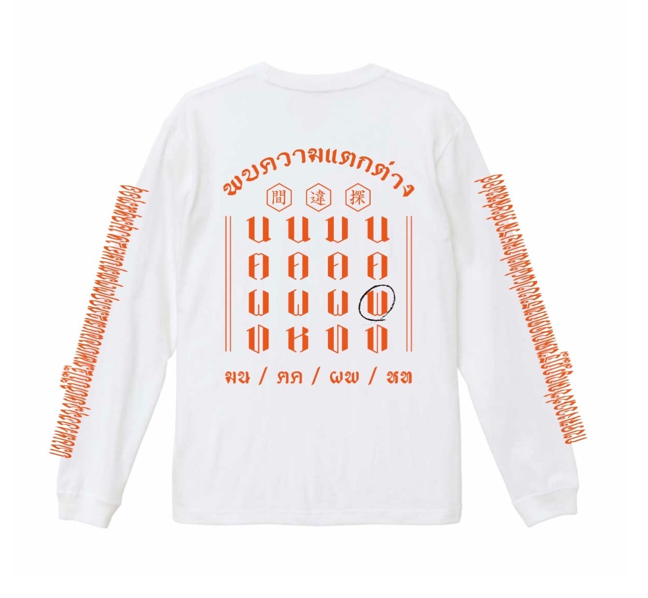 白にオレンジ色は袖にタイ語で違いを見つける/間違い探しとあって胸に漢字で間違探の刺繍入り